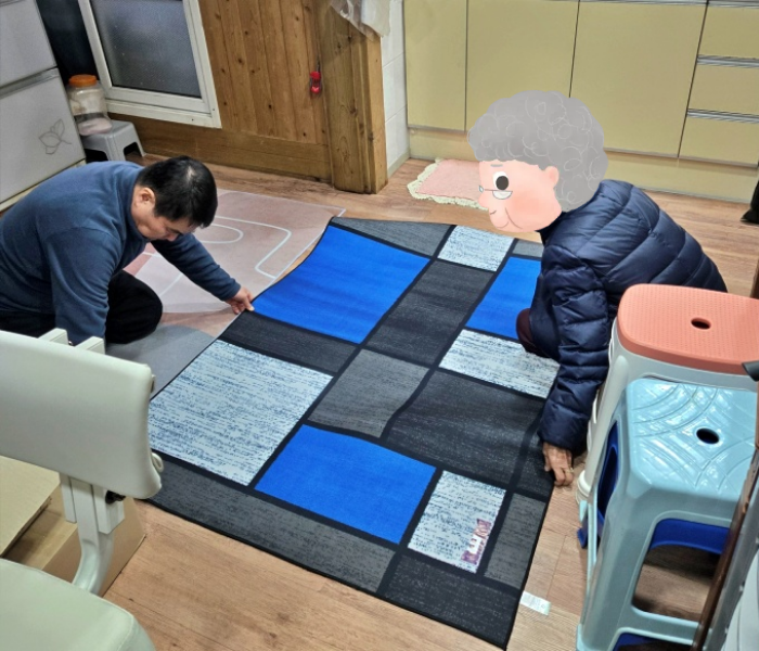 성도들이 직접 어르신 가정을 방문해 카펫을 전달했습니다.