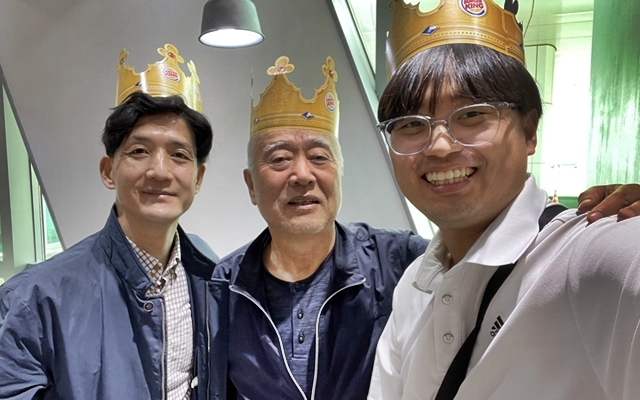 <공항 음식점에서 어린이날 기념으로 선물 받은 왕관을 쓰고 함께 찍은 사진