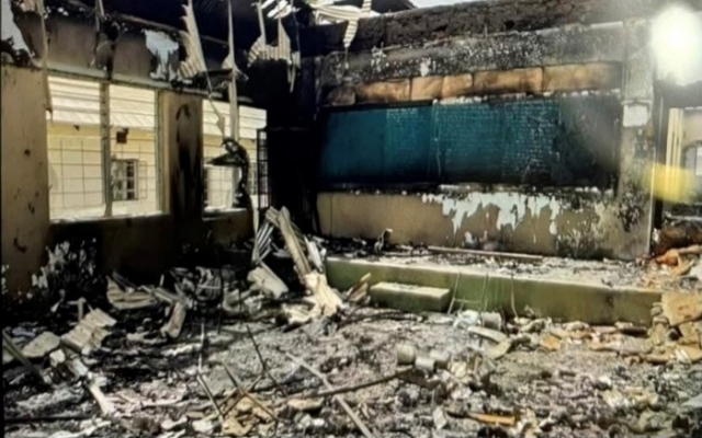 불에 탄 후의 학교 교실, 외관 사진이 전달되었습니다.
