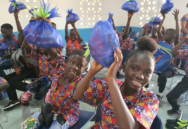 새 가방, 운동화 등을 아이들에게 선물하여