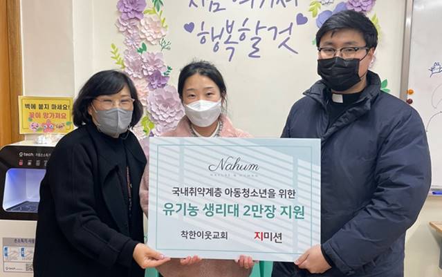 유기농 나훔생리대 20,600장을 기부했습니다.
