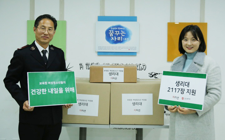 지미션은 구세군서울후생원에서 지내는 여성청소년들을 위해 생리대를 지원하였습니다.
